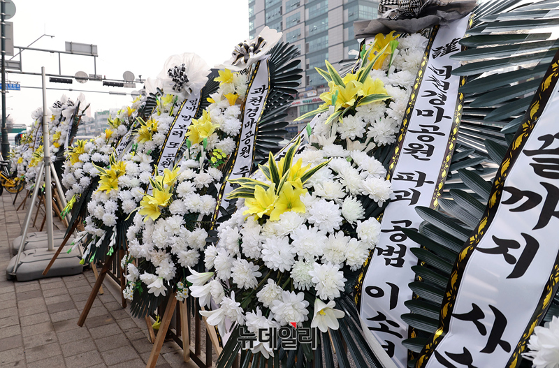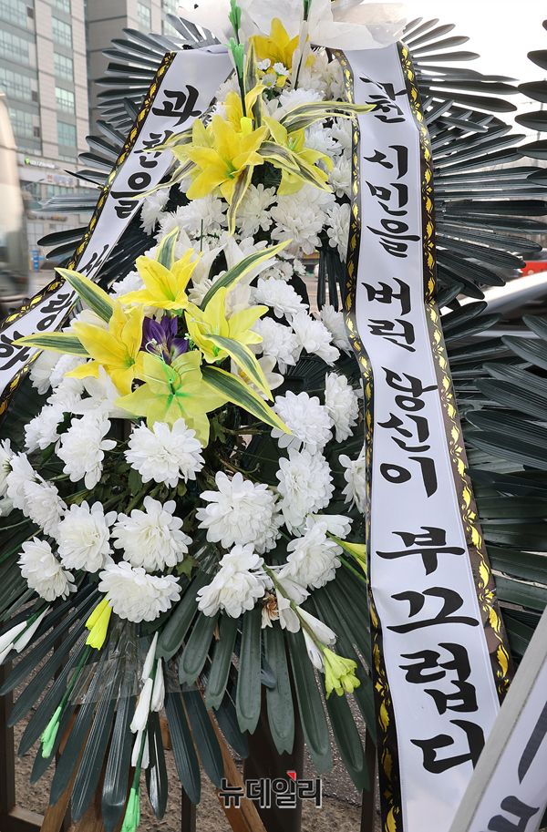 [포토] 이소영 의원 지역사무실에 설치된 과천경마공원 사수 근조화환