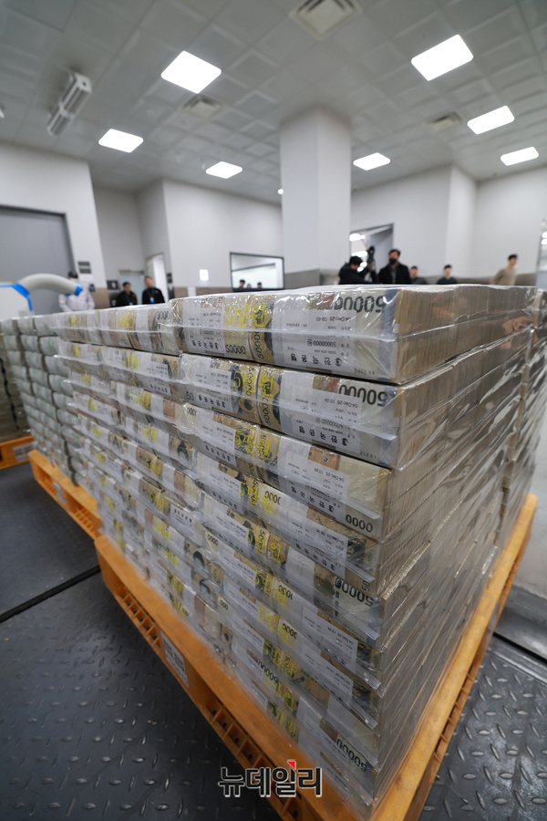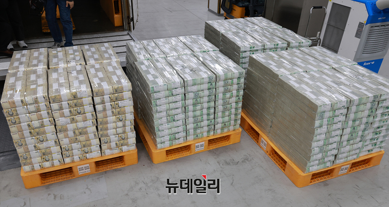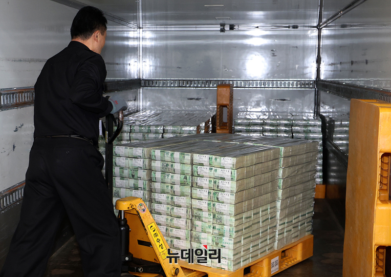 민족 대명절 설을 앞둔 11일 오전 서울 중구 한국은행 본점에서 직원들이 시중은행으로 공급될 설 자금 방출 작업을 하고 있다. (사진=공동취재단)