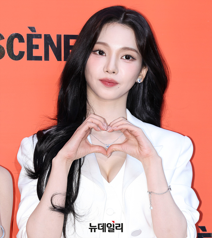 그룹 에스파 카리나가 19일 오후 서울 성동구 올리브영 N 성수에서 열린 미쟝센 '퍼펙트 세럼' 올리브영 N 성수 팝업 오픈 기념 포토콜 이벤트에서 포즈를 취하고 있다.