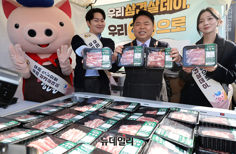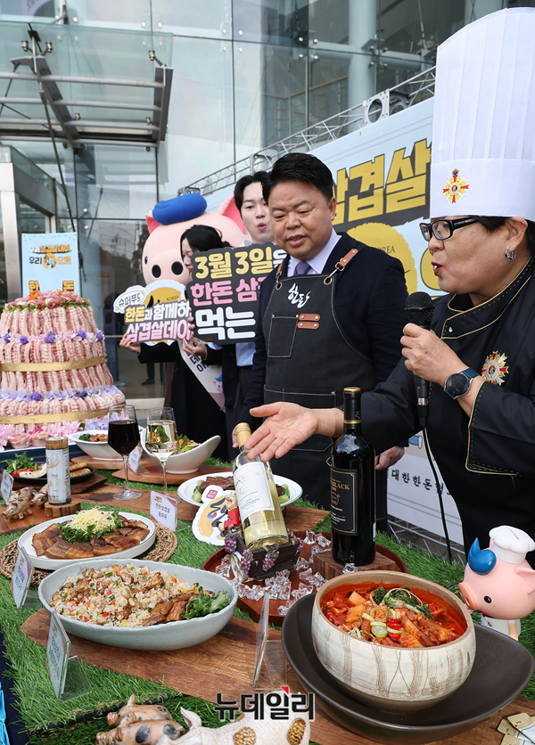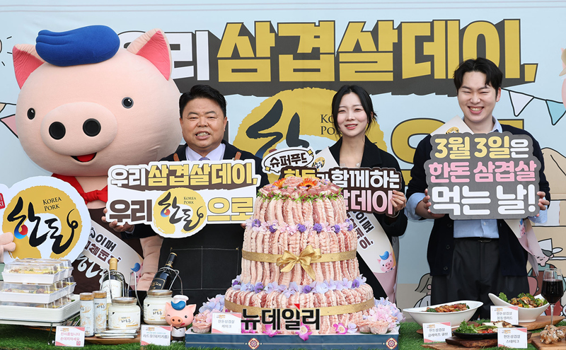 이기홍 한돈자조금관리위원회 위원장이 27일 오전 서울 종로구 일민미술관 앞에서 2026년 삼겹살데이(3월 3일)를 앞두고 열린 '우리 삼겹살데이, 우리 한돈으로' 소비촉진 행사에서 한돈을 알리며 기념촬영을 하고 있다.먼저 2월 27일 서울 동아일보 앞 동아광장에서 현장 할인 판매가 진행된다. 행사장에서는 한돈 삼겹살·목살 1+1 꾸러미(1kg+1kg)를 최대 50% 할인된 가격에 판매한다. 이어 3월 2일부터 3일까지는 청주 서문시장 삼겹살거리 일대에서 할인 판매가 이어진다.이와 함께 삼겹살데이를 기점으로 한돈 공식 온라인몰과 전국 한돈인증점, 대형마트, 농협 유통채널에서도 할인 판매가 진행되며, 공식 SNS 채널에서는 ‘한돈 안 먹어본 사람 찾아라’ 이벤트도 함께 운영된다.이번 행사는 고물가 상황 속 소비자 체감 혜택을 높이고, 한돈의 우수성과 가치, 그리고 한돈 농가와 상생하는 소비문화를 확산하고자 마련됐다.이기흥 위원장은 “삼겹살데이를 통해 소비자에게는 실질적인 가격 혜택을, 한돈 농가와 지역 상권에는 활력을 불어넣는 계기가 되길 기대한다”며 “이번 행사를 계기로 소비자들이 한돈의 품질과 가치를 직접 경험하고, 향후 한돈 소비가 일상 속으로 자연스럽게 이어지길 바란다”고 전했다.