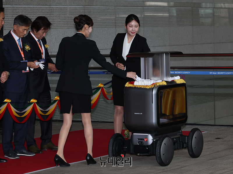 현대자동차그룹 로보틱스랩 모베드가 4일 오전 서울 강남구 코엑스에서 열린 '2026 스마트공장·자동화산업전(AW2026)' 개막식에서 개막 준비물을 전달하고 있다.2026 스마트공장·자동화산업전(AW2026)은 아시아를 대표하는 제조 AX 전문 전시회로 글로벌 500개 기업이 2,300개 부스를 운영한다.최신 자동화 기술과 제조 혁신 흐름을 가장 먼저 확인할 수 있는 전시로 4일 개막을 시작으로 사흘간 코엑스 전관(A,B,C,D홀), 로비, THE PLATZ에서 개최된다.