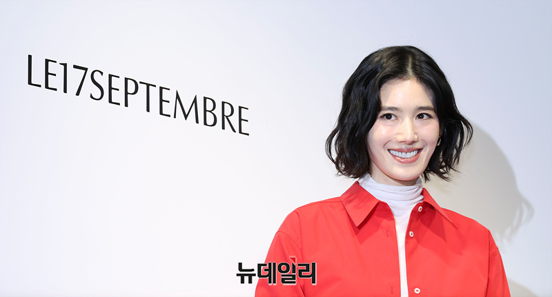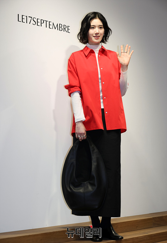 배우 정은채가 10일 오후 서울 용산구 한남동 르셉템버 한남 플래그십 스토어에서 열린 오픈 기념 포토월에서 포즈를 취하고 있다.