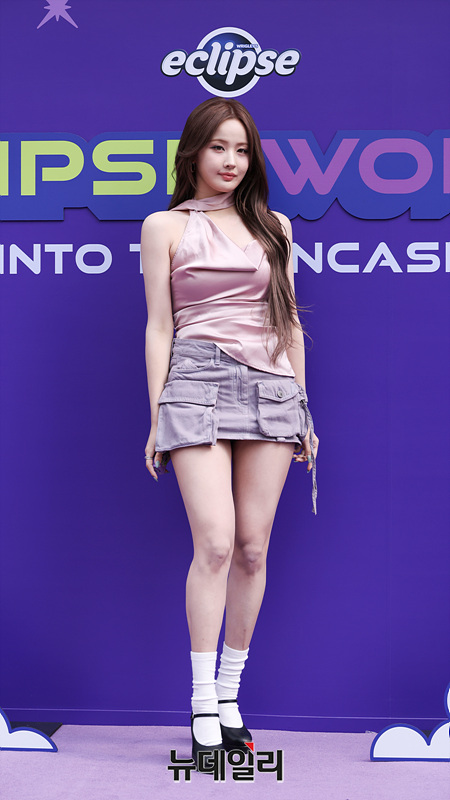 키스오브라이프 벨이 12일 오후 서울 성동구에서 열린 글로벌 민트 브랜드 '이클립스' 신제품 포도향 국내 출시 기념행사 포토월에서 포즈를 취하고 있다.