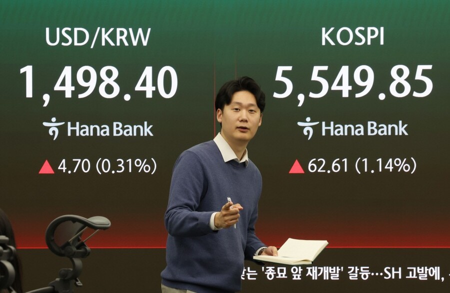 코스피, 거래대금 감소 뚫고 1%대 상승 5549.85 안착 삼전·SK하닉 등 대형 반도체주 나란히 급등하며 견인 코스닥은 외인·기관 동반 매도세에 1.27% 하락 마감