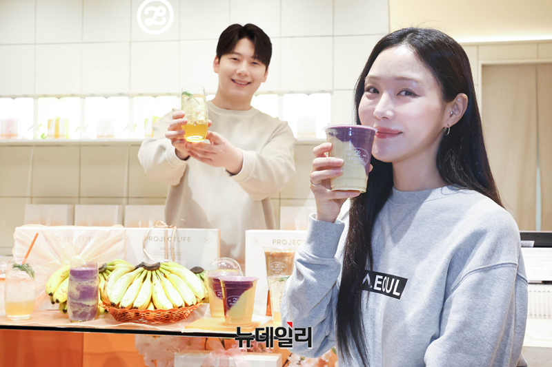 신세계백화점 강남점 지하 1층 ‘웰니스바’에서 국내산 유기농 원료를 활용한 건강음료를 새롭게 선보인다.이번에 출시한 음료는 국내산 유기농 바나나 농가와 협업해 우수한 원재료를 사용한 것이 특징이다. 한 잔으로 건강을 쉽고 맛있게 챙길 수 있도록 기획해 웰니스 트렌드를 반영했다.대표 상품은 천연 허브를 화이트 발사믹에 저온 숙성해 상큼한 풍미를 살린 ‘바나나 샴페인 에이드’가 7,800원, 국내산 유기농 바나나에 블루베리·망고·파인애플을 블렌딩해 만든 ‘바이탈 밸런스 스무디’가 9.800원이다.또 바나나의 자연스러운 단맛에 올리브유를 더해 고소한 풍미를 살린 커피 음료 ‘올리브나나 라떼’도 8,800원에 만나볼 수 있다. (사진=신세계백화점)