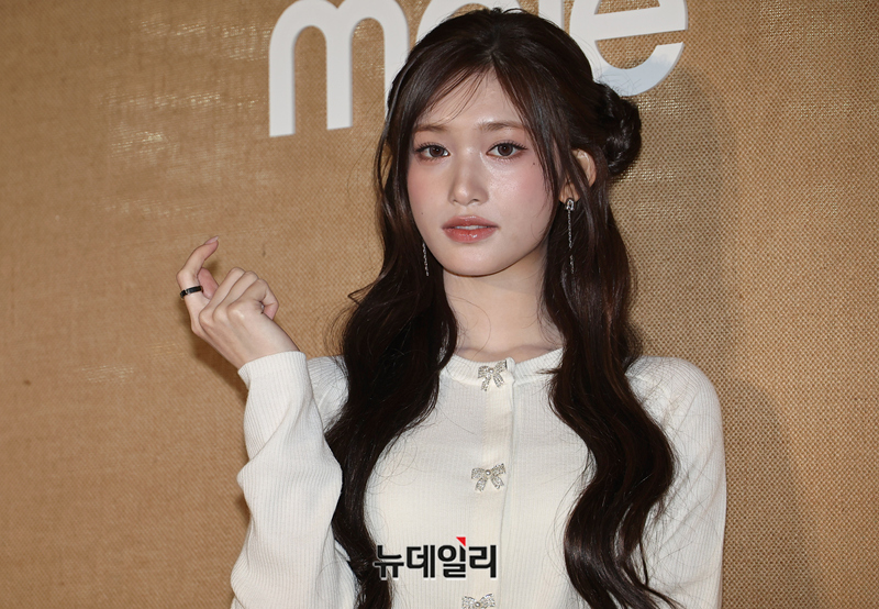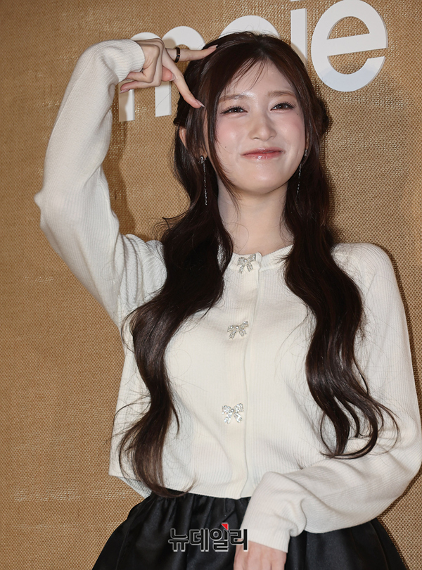 아이브 이서가 19일 오후 서울 용산구 몬드리안 서울 이태원에서 열린 여성 브랜드 마쥬(maje) 2026 봄여름 컬렉션 프레젠테이션에서 포즈를 취하고 있다.