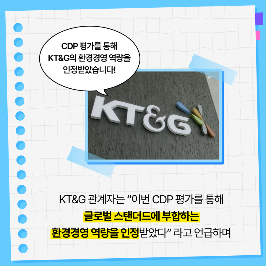 [카드뉴스] KT&G, 기후변화·수자원 관리 부문 우수기업 선정