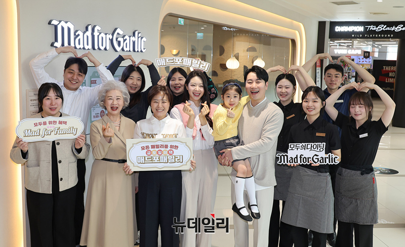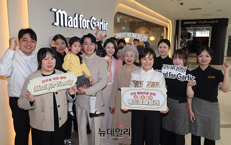 윤다예 엠에프지코리아 대표를 비롯한 임직원들이 24일 오전 서울 매드포갈릭 영등포타임스퀘어점에서 열린 매드포패밀리 캠페인에서 세레머니를 진행하고 있다.엠에프지코리아가 운영하는 모두의 다이닝 매드포갈릭은 2026년 브랜드 슬로건 ‘매드포패밀리(Mad for Family)’를 공식 선언하고 본격적인 캠페인에 나선다.'매드포패밀리'는 가족 단위 방문 고객을 넘어 ‘모든 패밀리’라는 확장된 관점에서 다양한 세대와 라이프스타일을 아우르는 맞춤형 혜택을 제공해 고객 경험을 확장하고자 하는 매드포갈릭의 의지를 담았다.고객 접점을 확대하고, 누구와 함께하든 의미 있는 시간을 제공하는 것을 핵심 가치로 삼아 프리미엄 다이닝 브랜드로서의 입지를 한층 공고히 할 계획이다.