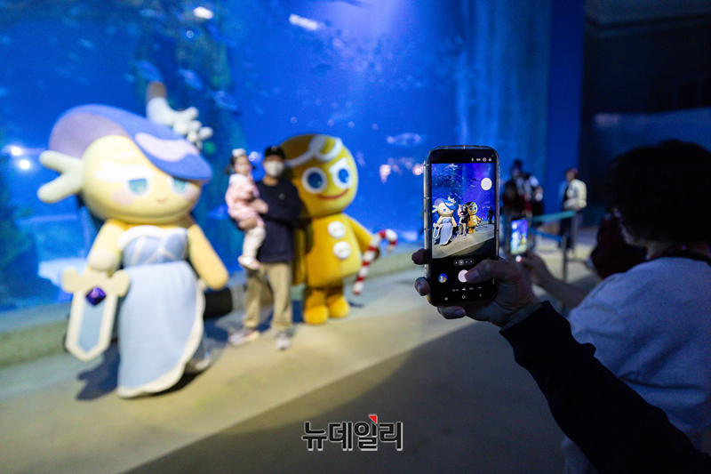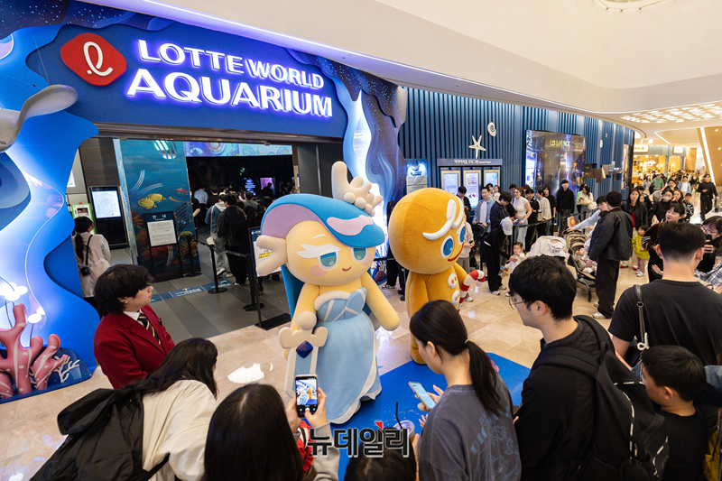 롯데월드 아쿠아리움이 데브시스터즈의 대표 IP ‘쿠키런’과의 대규모 컬래버를 통해 봄 시즌 축제 '쿠키런 in 롯데월드 아쿠아리움: 바다모험전'을 오픈했다.아쿠아리움 전역에 쿠키런 요소를 더한 테마 공간들을 선보이며 캐릭터 공연, 모바일 기반 AR(증강현실) 스탬프 투어, 한정판 굿즈와 F&B까지 온 가족이 즐길 수 있는 신규 콘텐츠를 선보인다.3월 27일부터 6월 7일까지 진행하는 이번 시즌 축제는 한국 전래동화 속 용궁 콘셉트로 변신한 아쿠아리움에 ‘용감한 쿠키’, ‘밀키웨이맛 쿠키’ 등 쿠키런 인기 캐릭터가 찾아와 해양생물로부터 단서를 얻어 전설의 보물을 찾는다는 스토리로 전개된다. (사진=롯데월드 아쿠아리움)