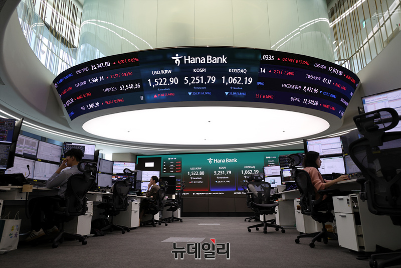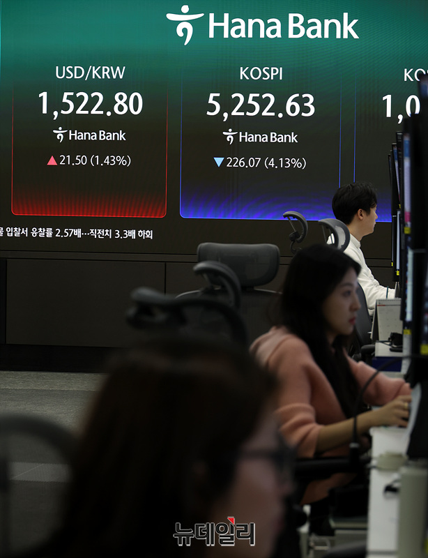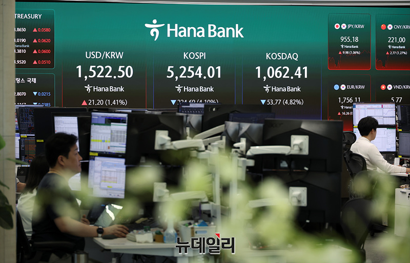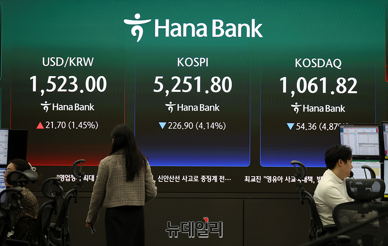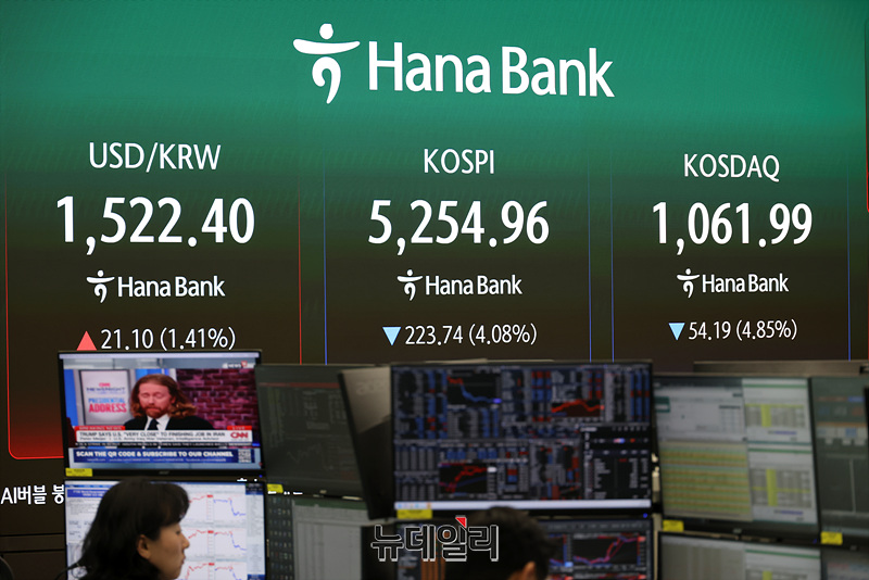 종전 기대에 상승세 타다 트럼프 발언 직후 급락 돌변 … 코스피 5%대 하락, 삼전·SK하닉 장중 7% 급락