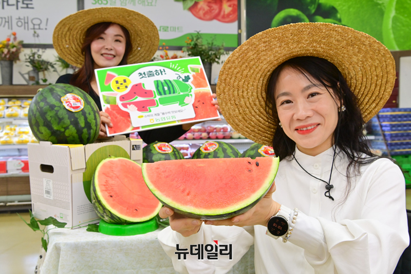 농식품 전문 매장 농협 하나로마트를 운영하는 농협유통(대표이사 이동근)은 2일 겨우내 맛있게 자란 경남 함안 수박을 처음 선보였다.동의보감에 따르면 수박은 열 내릴 때 사용한 한약재로 수박의 약 95%가 수분으로 이뤄져 갈증 해소와 수분 보충에 좋다. 과당과 포도당은 몸에 쉽게 흡수돼 더위로 인한 피로를 풀어주며 감기 예방에도 효과적인 것으로 알려져 있다.