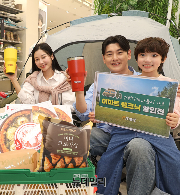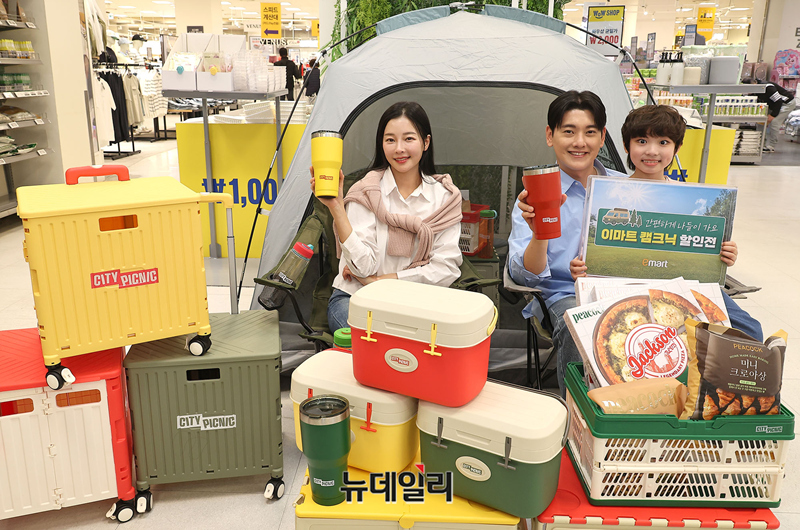 이마트가 9일 오전 서울 중구 청계천점에서 4월 9일부터 15일까지 일주일동안 인기 캠핑용품과 먹거리를 최대 할인하는 ‘봄 나들이 캠크닉(캠핑+피크닉) 특가전’을 소개하고 있다.이마트는 이번 행사 기간에 맞춰 캠핑·아웃도어 브랜드 ‘시티 피크닉(City Picnic)’ 14종 신상품을 선보이고 신세계포인트 적립 시 전 품목 20% 할인 혜택을 제공한다.