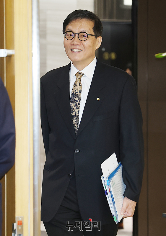 이창용 한국은행 총재가 10일 오전 서울 중구 한국은행 본관에서 열린 금융통화위원회 본회의에 들어서고 있다. (사진=공동취재단)