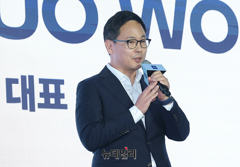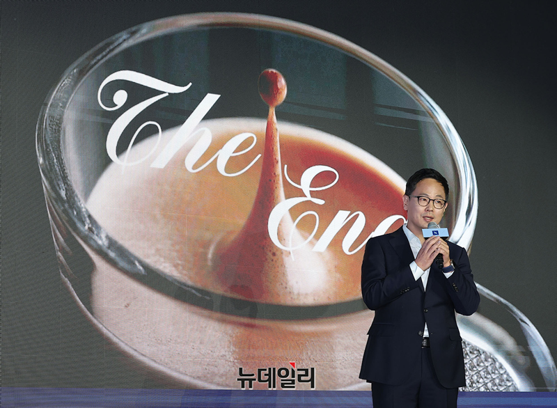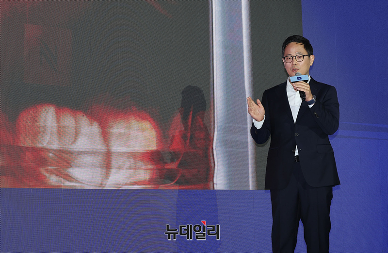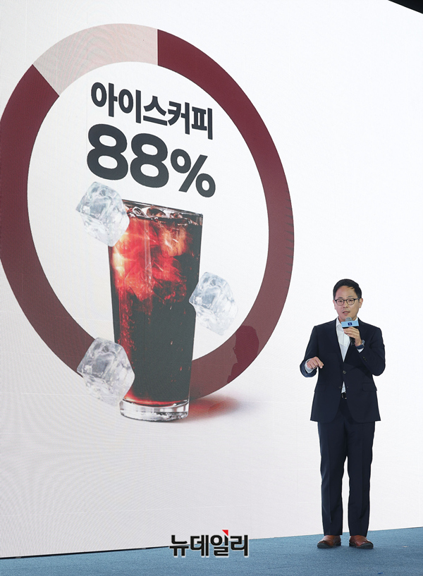 박성용 네스프레소코리아 대표가 23일 서울 성동구 성수동에서 열린 '버츄오 월드 미디어 데이'에서 신규 커뮤니케이션 캠페인을 공개하고 있다.