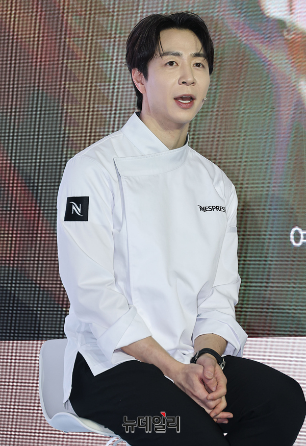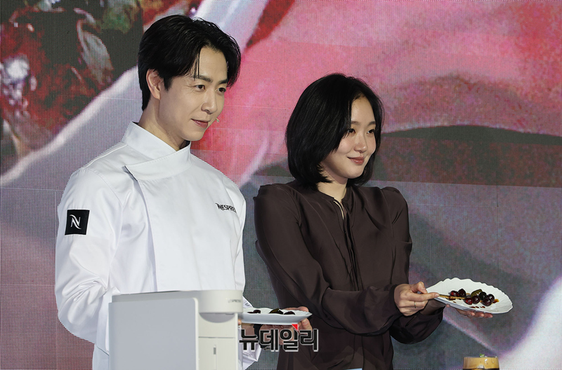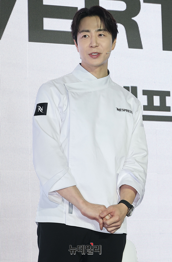 손종원 셰프가 23일 서울 성동구 성수동에서 열린 네스프레소 '버츄오 월드 미디어 데이'에서 포토타임을 갖고 있다.