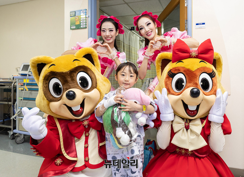 롯데월드가 어린이날을 앞둔 22일, 서울대어린이병원을 방문해 '찾아가는 테마파크' 행사를 진행하고 있다. 이번 행사는 어린이날을 병실에서 보내야하는 환아와 가족들에게 특별한 추억을 선사하기 위해 마련했다.이날 롯데월드 대표 캐릭터 로티, 로리와 공연 연기자들은 환아들이 있는 병실 마다 방문해, 봉제가방, 캐릭터 뱃지 등 정성스럽게 준비한 캐릭터 선물을 전달하고 기념촬영을 진행했다.롯데월드 임직원으로 구성된 샤롯데봉사단은 1995년부터 어린이병원을 방문해 특별 위문공연을 진행하고 있다. 투병 중인 환아와 가족들을 방문해 공연을 진행하고 특별한 추억을 선사하는 '찾아가는 테마파크' 외에도 소아암 어린이들에게 꿈의 무대를 선사하는 '드림 스테이지' 등 테마파크의 특성을 살린 사회공헌활동을 통해 아름다운 나눔을 실천하고 있다. (사진=롯데월드)