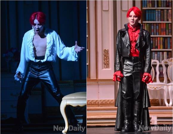 그간 뮤지컬 '모차르트!', '엘리자벳' 등에서 파격적인 헤어스타일을 선보였던 김준수는 이번 뮤지컬 '드라큘라'에서 강렬한 붉은색 머리로 변신해 눈길을 사로잡았다.