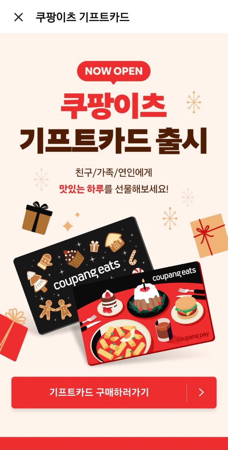 ▲ 쿠팡이츠가 최근 기프트카드를 출시했다.ⓒ쿠팡이츠 앱