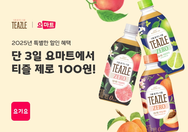 이번 프로모션은 1월3일부터 5일까지 3일간 진행되며, 웅진식품과 함께 ‘티즐 제로’ 음료를 100원에 판매한다.
