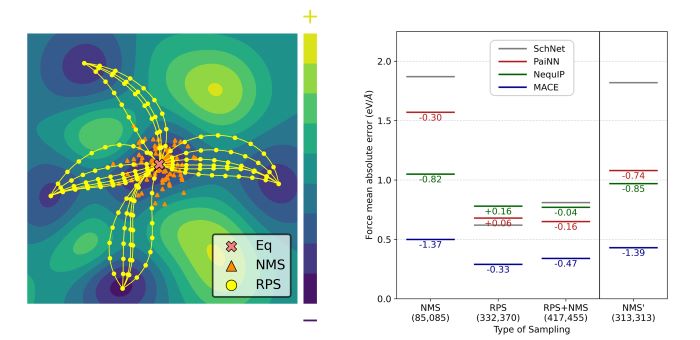 연구팀은 화학 반응 공간을 효율적으로 탐색하는 '반응 경로 샘플링 기법'을 개발했다. 이는 반응 경로와 전이 상태를 자동으로 탐색해 데이터를 생성하며, 사람의 직관적 판단에 의존하지 않아 데이터 편향을 최소화했다. 연구팀은 이 기법을 활용해 고에너지 전이 상태를 포함한 반응 경로 데이터를 효과적으로 포착했으며 이를 머신러닝 기반 원자 간 포텐셜 학습에 적용해 모델의 예측 성능을 획기적으로 개선했다.